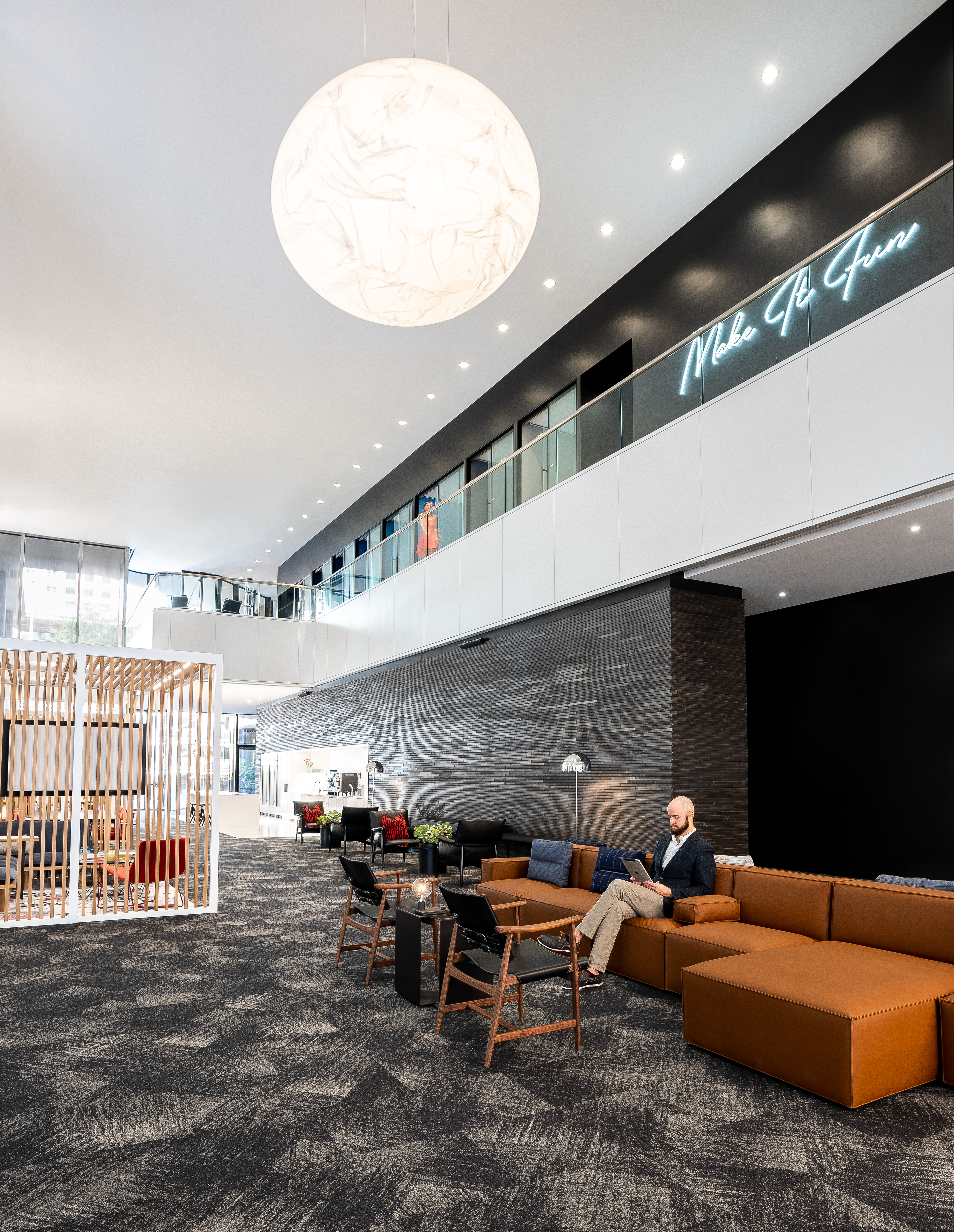 G2LD recently saw the completion of the new Gensler Houston office, which we designed with, of course, Gensler. Their new 50,000 sq.ft. office comprises two levels of the 2 Houston Center building downtown. Using their own data about current trends and forward-thinking best practices, Gensler decided to implement what they call agile working, which means people are encouraged to work where best suites their needs. For some that means being near others working on the same project, for others it means finding a nice quiet nook away from distractions, and for others it means working remotely. Though the space was designed pre-Covid, the flexibility of the space and infrastructure for all to work remotely meant they could transition quite smoothly.