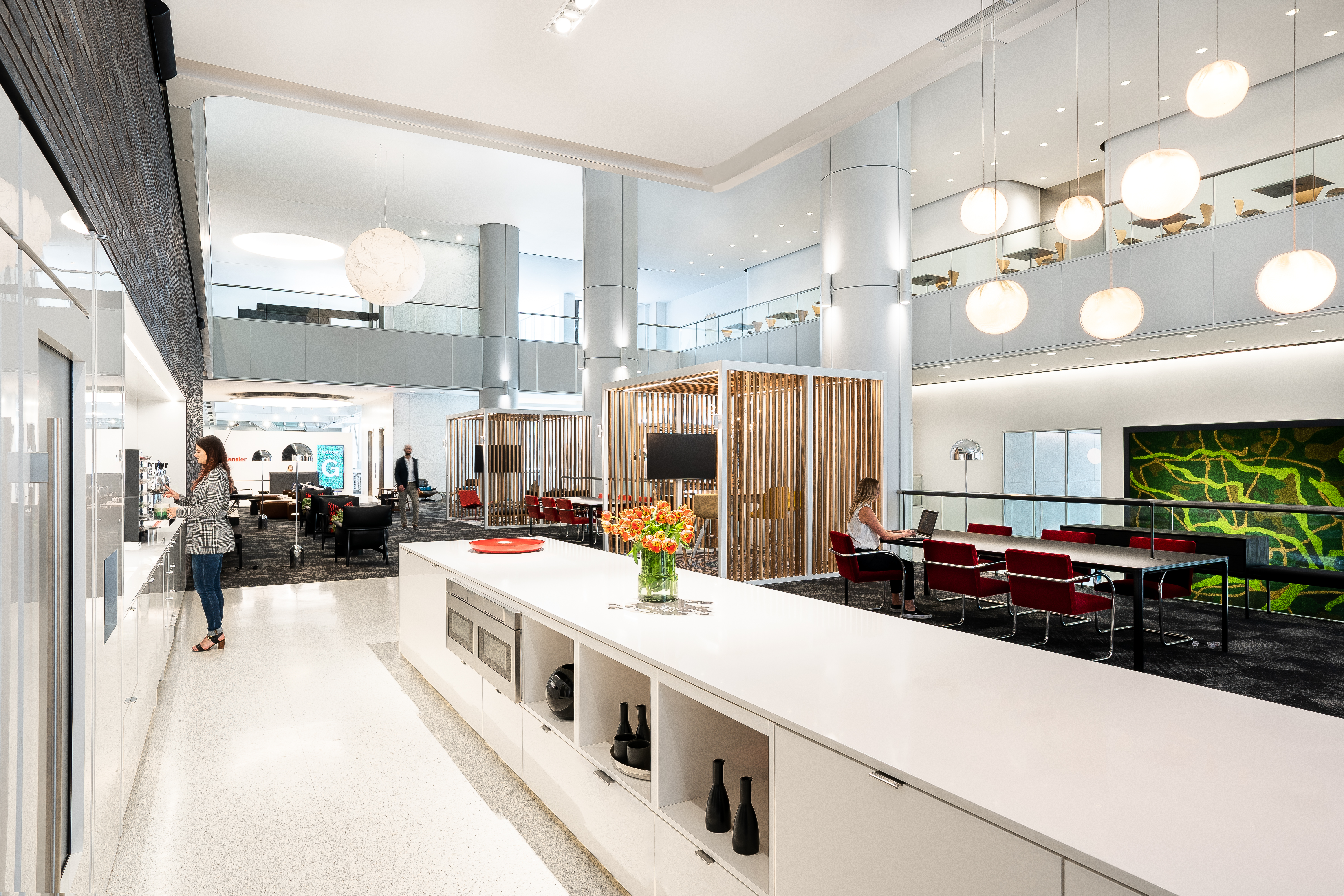 For those who prefer fewer distractions, even smaller huddle spaces with residentially-scaled lighting can be found scattered throughout the office.