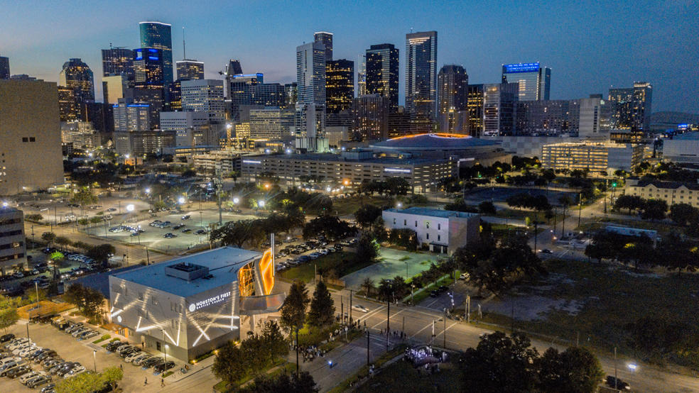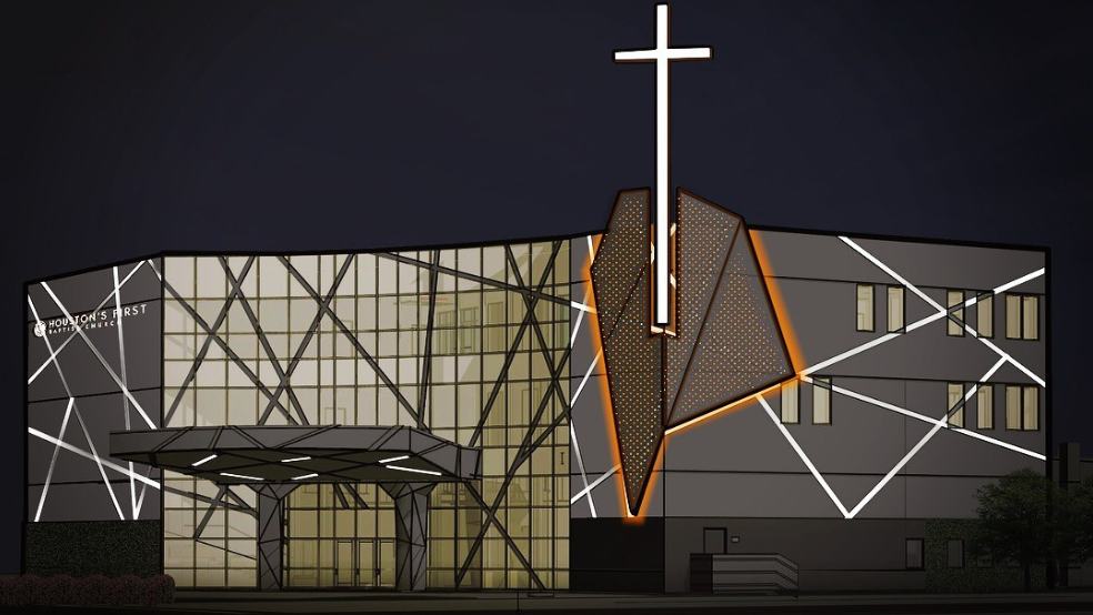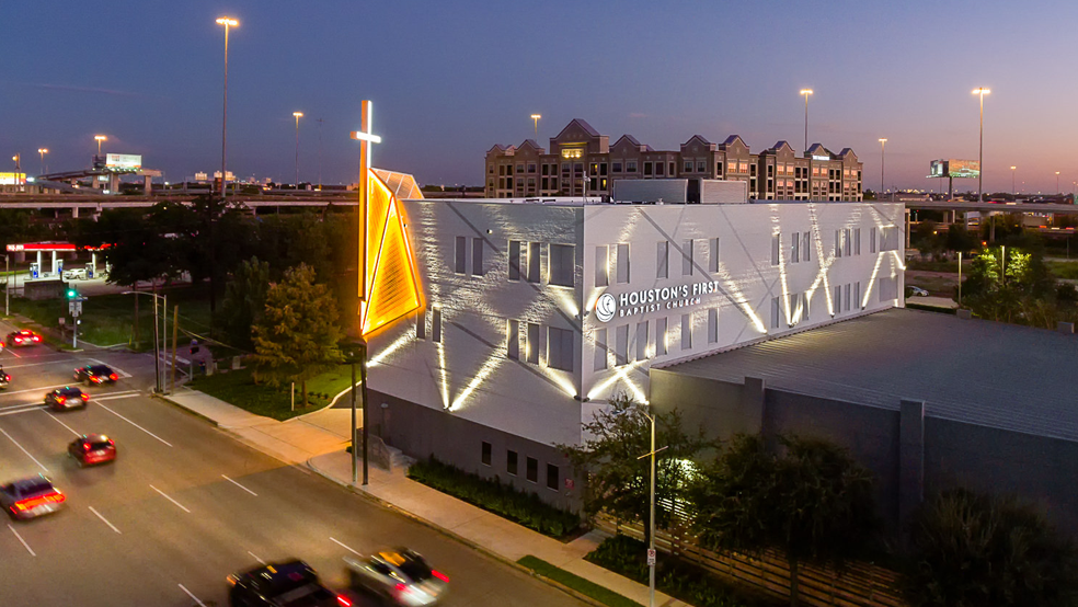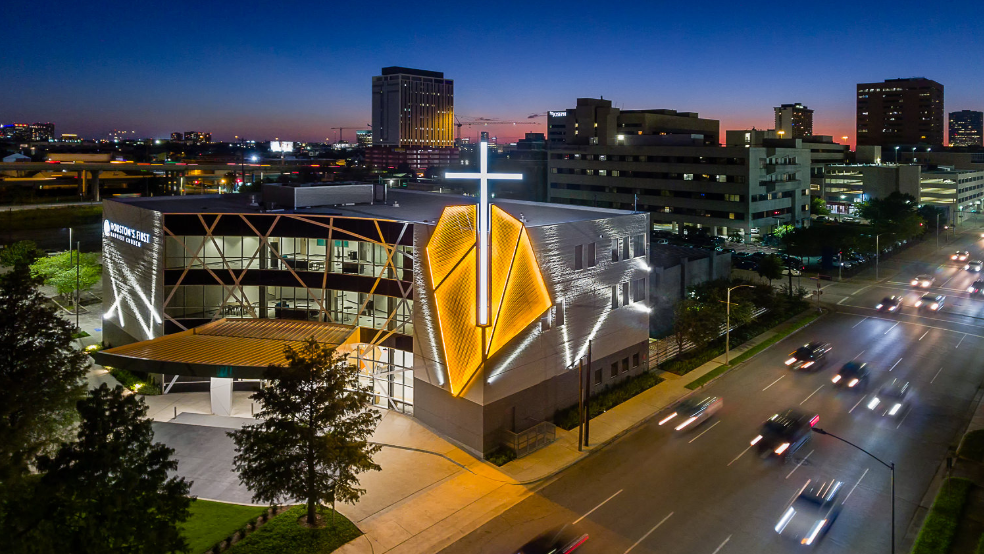 Though the new downtown campus for Houston’s First Baptist Church started as an outdated union hall, the designers had a mission to transform the eyesore into a vibrant church. The client wanted this campus to stand out visually, describing it early in the design process as ‘a place of light in the city’.