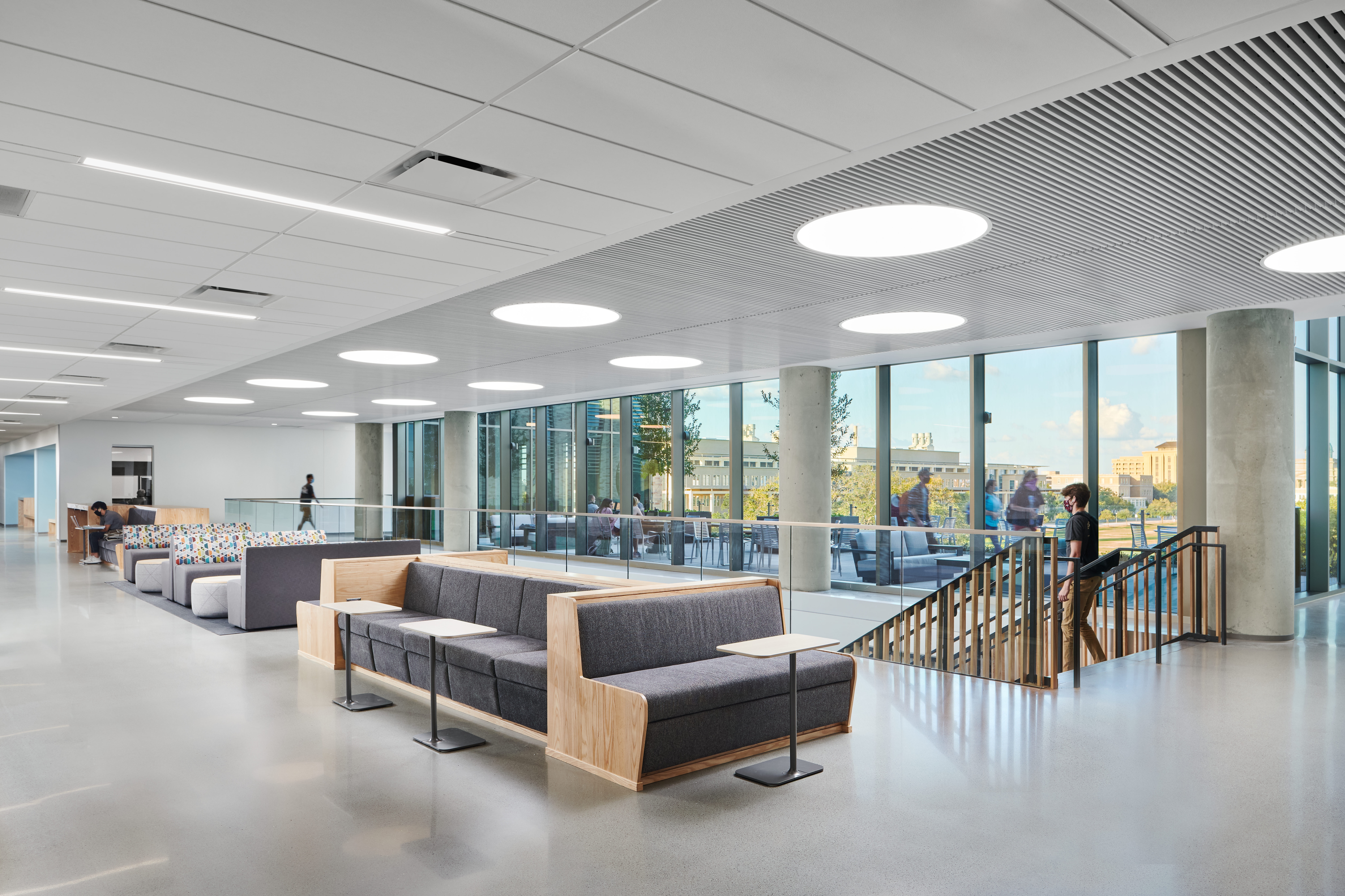 At over 120,000 square feet, the building incorporates 2,200 classroom seats across 10 classrooms along with offices, a café and collaboration spaces throughout.